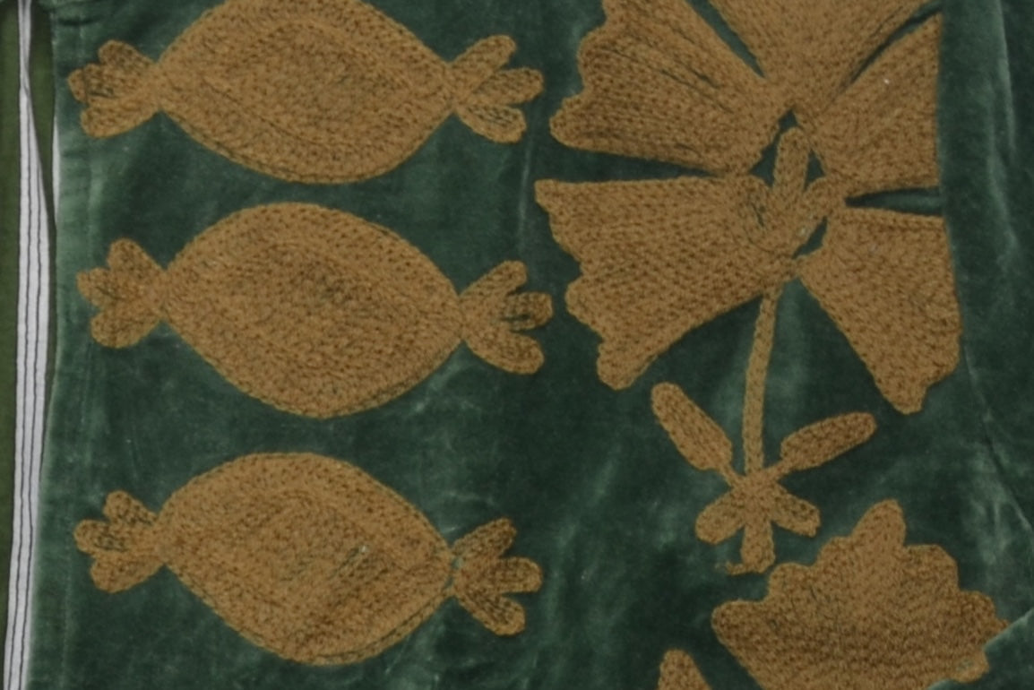 Totochic jackets combine a hand-dyed velvet exterior with colourful embroidery and a striped cotton lining inside. You can wear the jacket both sides! Totochic pieces also have a pocket on each side, left & right.